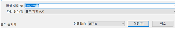 3. 위 사진과 같이 파일이름을 test.mv.db로 입력하고 파일 형식을 모든 파일로 바꾸어준다.