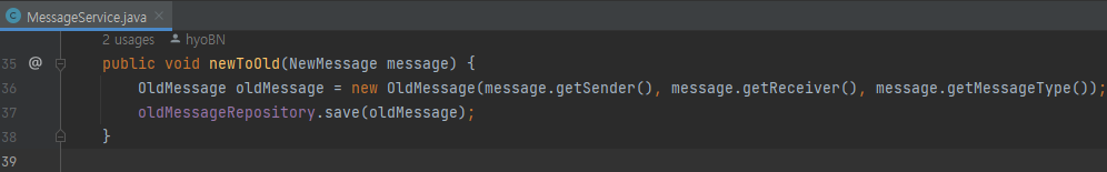 - 아래 사진과 같이 DTYPE을 통해 newMessage, oldMessage를 구분한다.